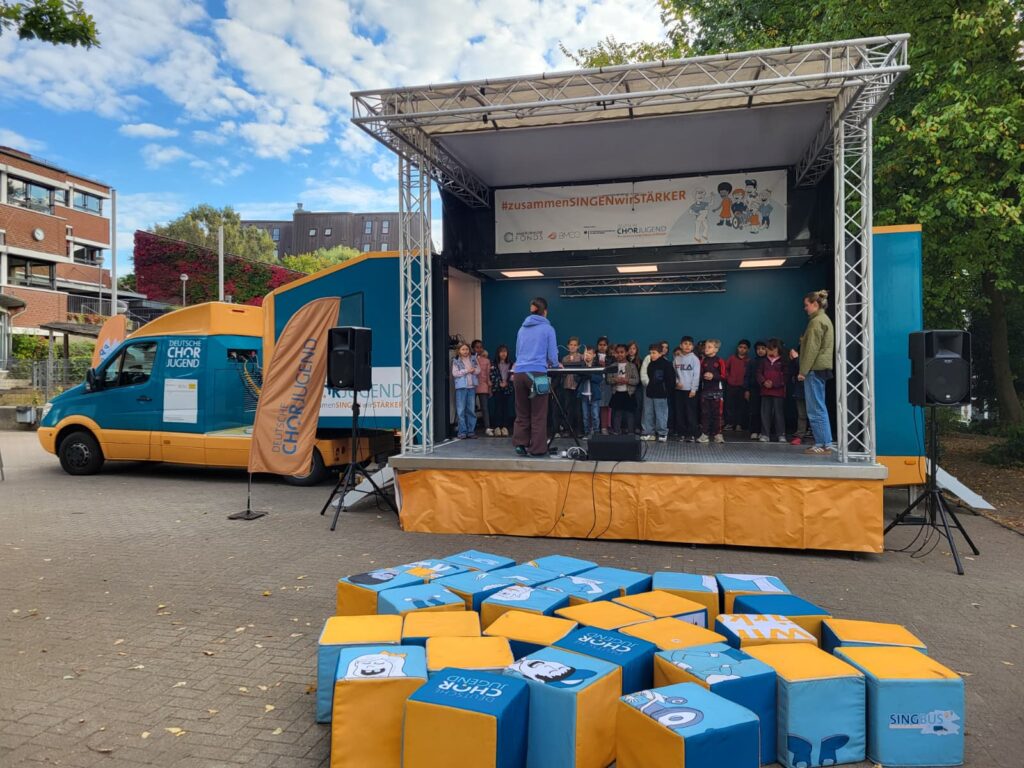 Am 30. September machte der SingBus der Deutschen Chorjugend Halt an unserer Schule. Die Schülerinnen und Schüler nahmen zunächst an einem abwechslungsreichen Sing-Workshop mit einer Musikpädagogin teil, bei dem sie spielerisch ihre Stimme entdecken und gemeinsam musizieren konnten. Danach hatten die Klassen die Gelegenheit, die interaktive Sing- und Klingausstellung zu erkunden. An verschiedenen Stationen konnten die SchülerInnen aktiv werden und Klänge auf vielfältige Weise entdecken. Ein erlebnisreicher Tag, der allen viel Freude bereitet hat.